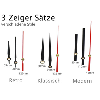 - 3 Zeiger-Varianten (je Sekunden-, Minuten- und Stundenzeiger)